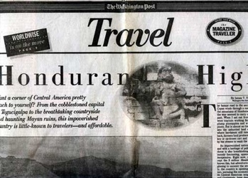 ...Though Tegucigalpa has a population approaching 1 million, the city disappeared as we climbed into a cool, scenic realm of green hills and tall pines. Every mile or two, a farmer had set up a stand to sell fresh flowers or vegetables, pine apples and other fruit. Outside many homes, the family laundry lay drying on fences and bushes.