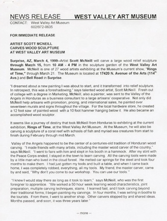 It seems like a journey of destiny that took McNeill from Honduras to exhibiting at the current exhibition, Rings of Time, at the West Valley Art Museum. At the Museum, he will also be carving a sculpture of a coral reef with schools of fish and myriad of sea creatures from start to finish during February through March.